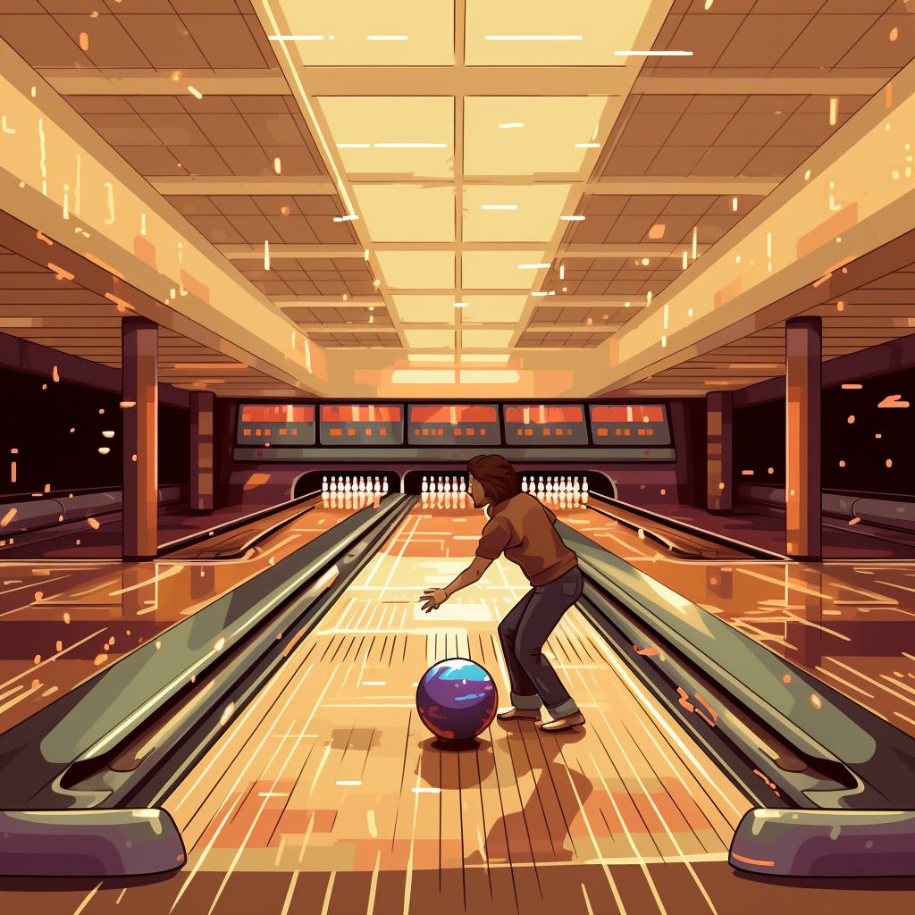 I’ve bowled fewer than ten times in my life. I moderately enjoy it, and I have a tiny amount of natural talent for it. Well, enough talent to be kinda-sorta-ok.
