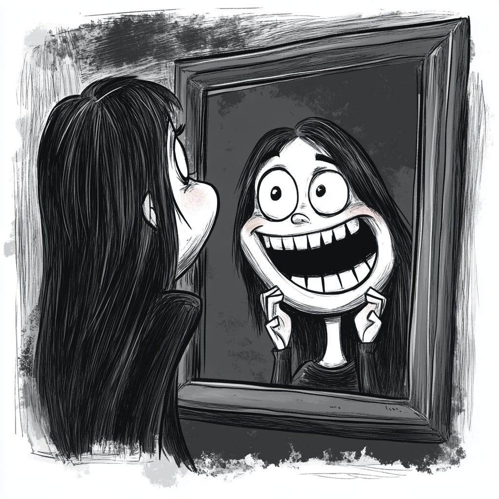Another person on our side of the mirror tapped on the glass. My dad stopped them. “Let them find out like you did.” We watched until the novelty faded. We moved on, at least physically. I walked away, but I have never once trusted another mirror.