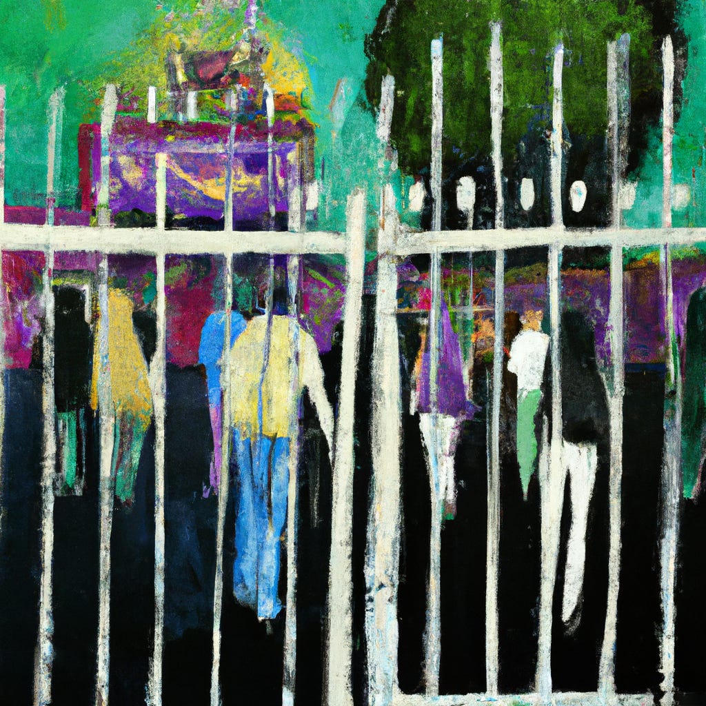 I was pretty sure we just fell for a scam. After a bit, a large vinyl sign advertising something pulled away from the fence, and someone said, "Hey! Y'all with Jon?" Since we were, he let us through a hidden gate. Upon reflection, I don’t think we got a legitimate entrance.